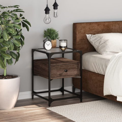 barna tölgy színű szerelt fa éjjeliszekrény 40 x 40 x 55 cm bútor termékleírás