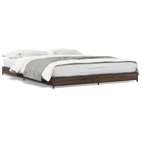 1 kép barna tölgyszínű szerelt fa és fém ágykeret 140x190 cm