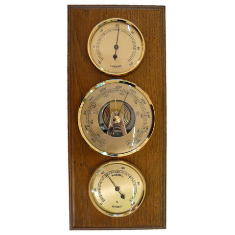 Három az egyben időjárásállomás: Barométer, hőmérő és higrométer ☀️🌡️ Ez a stílusos, tölgyfa hátlappal ellátott időjárásállomás egyszerre mutatja a légnyomást, a hőmérsékletet és a páratartalmat. Ideális választás otthonába vagy irodájába, hogy mindi...