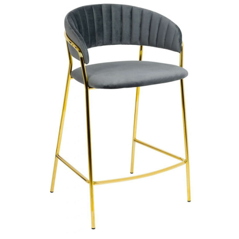 1 kép Bárszék MARGO 65 sötétszürke - bársony, arany lábazat