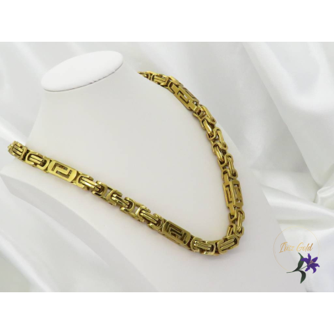 Nemesacél férfi nyaklánc királyi szemes görög mintával díszítve Szin: 18K Méret: 55 cm/9mm