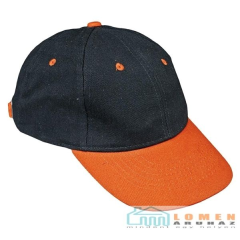 Baseball sapka Baseball stílusú sapka állítható, fémcsatos Alapanyag: 100 % fésült pamut Szín: Fekete / Narancs Méret: Univerzális