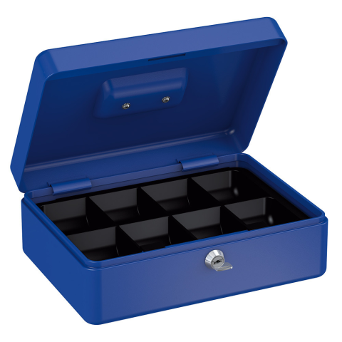 Basi-GK 10L pénzkazetta érmetartóval •acéllemez pénzkazetta•süllyesztett fém fogantyú•8 rekeszes műanyag aprópénztartó•alatta hely bankjegyeknek•krómozott lamellás zár•kettő darab kulccsal•többféle méretben és színben áruljuk