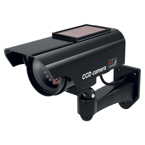 Basi-KA 311 napelemes álkamera •valósághű biztonsági álkamera, tolvajok elrettentésére•piros villogó fénnyel és a hátulján lévő kábelutánzattal azt a benyomást kelti, mintha egy igazi kamera lenne •LED működéshez két AA újratölthető elem szükséges (nem