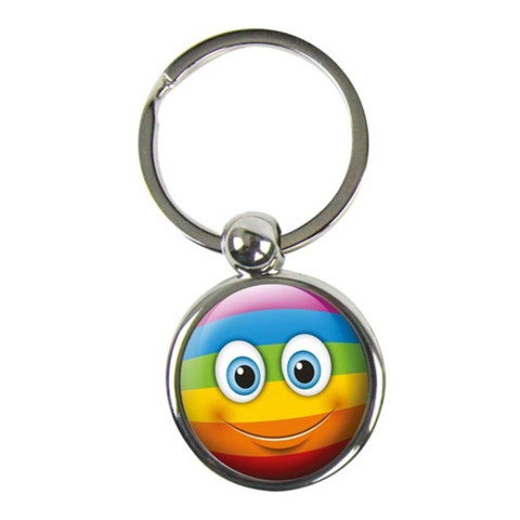 Basi-SH 0064 D8 szivárványos kulcstartó •Emojis fém kulcstartó•szivárvány arcos minta•acél kulcskarikával