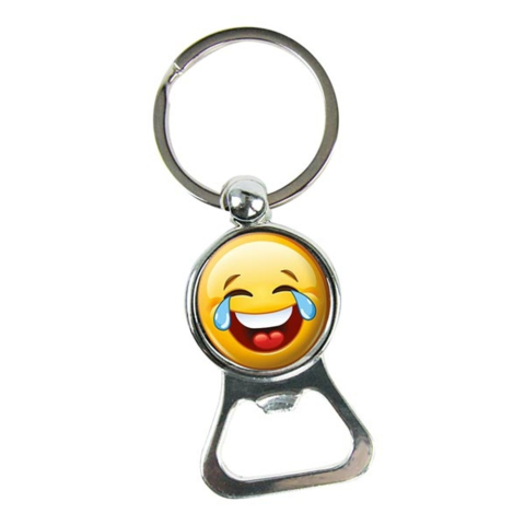 Basi-SH 0066 D2 örömkönnyes sörnyitó •Emojis fém kulcstartó sörnyitóval•örömkönnyes arc minta•acél kulcskarikával