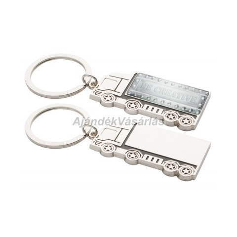 Teherautó formájú, fém kulcstartó. Fekete kartondobozban szállítjuk.
