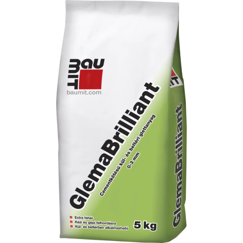 A Baumit Glema Brillant 5kg egy kiváló minőségű, cementes hófehér glettanyag, amely kül- és beltéri felhasználásra egyaránt alkalmas. Ez a termék ideális választás minden olyan építkezési és felújítási munkához, ahol sima, esztétikus felületet szeretnénk