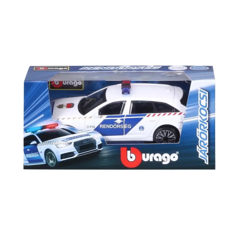 Az 1:43 méretarányú Bburago Audi A6 Avant magyar rendőrautó fémből és műanyagból készült autómodell. Az autó a Rendőrség felirattal és a 112 hívószámmal van díszítve, és pont úgy néz ki, mint az igazi kombi Audi rendőrautók. Az autót együtt tudod használn