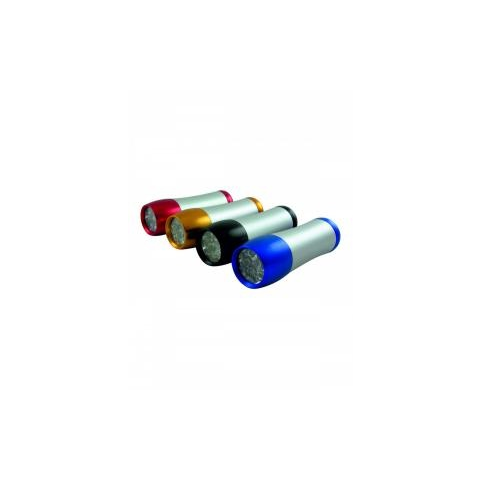 BC 9 LED-es alu zseblámpa színes - Kézi LED lámpa - Anyaga: alumínium, mûanyag - Fényforrás: 9LED izzó - Bekapcsolása nyomógombbal történik - Teljesítmény: 3xAAA / R03 ( az elem nem tartozék) - Akasztófüllel tárolható - Szín: fekete, kék, arany, lila A terméket vegyes színben forgalmazzuk!