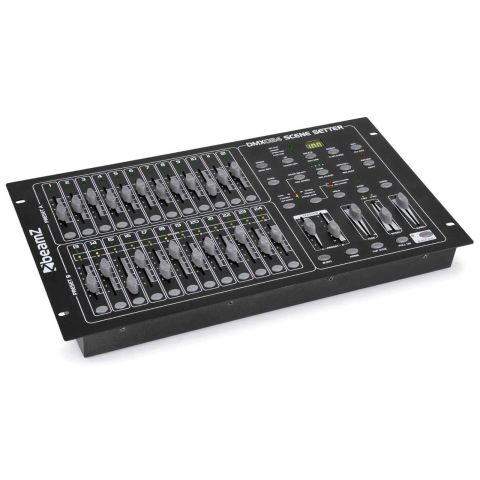 BeamZ DMX-024 DMX Fényvezérlő Panel - 24 Csatornás, 48 Programmal Ez a 24 csatornás DMX fényvezérlő panel ideális választás élő fellépésekhez, diszkókhoz és egyéb fénytechnikai alkalmazásokhoz. A 48 programmemória, mindegyik 99 lépéssel, lehetővé tes...