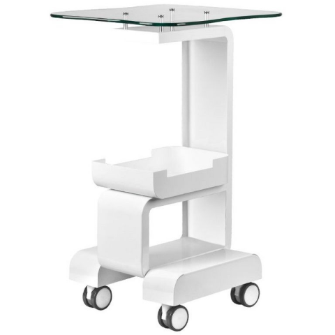 A kozmetikai eszköztartó kocsi két polccal rendelkezik, az üveg polc a kozmetikai eszközök, a fém polc a szépségápolási felszerelések tárolására szolgál.