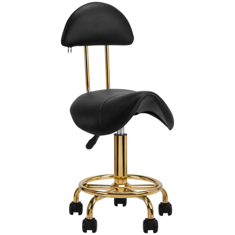 Az ötágú alapzattal rendelkező kényelmes és stabil háttámlás kozmetikai szék alkalmas szépség- és tetováló szalonokba egyaránt.