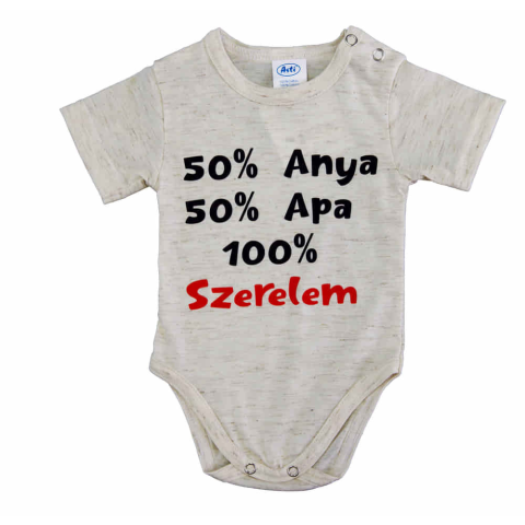 Kényeztesd kisbabádat ezzel a puha, 100% pamutból készült, rövid ujjú baba bodyval, amelyet a magyar Andrea Kft. gyártott. A nyers cirmos színű, felirattal nyomott body unisex, így kisfiúknak és kislányoknak egyaránt tökéletes. A vállon található nikkelme