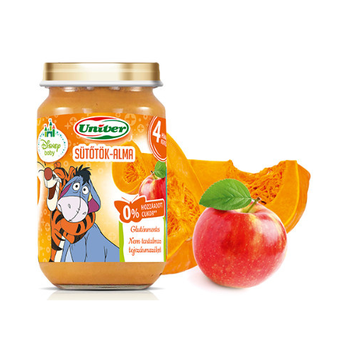 Sütőtök-alma bébidesszert, 4 hónapos kortól 163 g 0% hozzáadott cukor Gluténmentes Nem tartalmaz tejszármazékot Összetevők: sütőtökvelő (68%), víz, almavelő (10%), burgonyapehely, rizskeményítő.