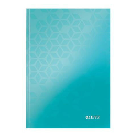 Beíró, A5, vonalas, 80 lap, keményfedeles, LEITZ Wow, jégkék Elegáns és látványos megjelenésű beírókönyv stílusos geometriai mintázattal és ragyogó WOW színekben. -kiváló minőségű karton laminált felülettel -tűzött kötés, melynek köszönhetően a lapok