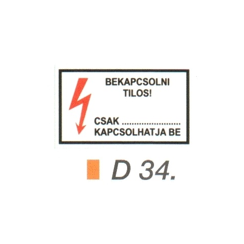Bekapcsolni tilos! Csak ... kapcsolhatja be Cikkszám: D34 Kivitel: Öntapadós Méret: 100x60mm