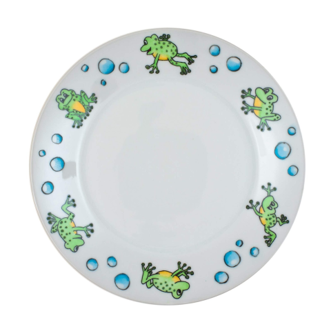 Békás kistányérKézzel festett porcelán tányér. mely felirattal névre szólóvá is tehető.A porcelánt festés után 820 fokon égetem ki, mikrohullámú sütőbe betehetők, mosogatógépben tisztíthatók.