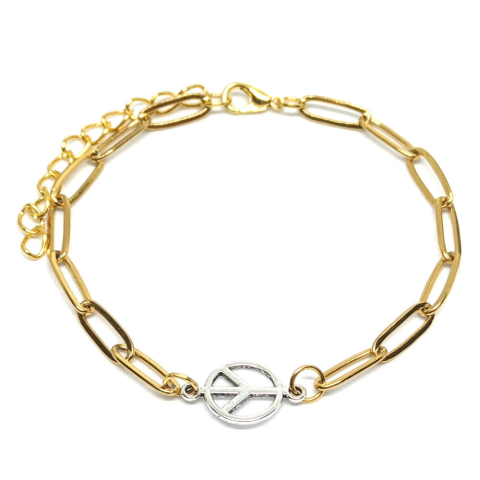 1 kép Békejel charmos rozsdamentes acél hosszú szemes karkötő, arany színű