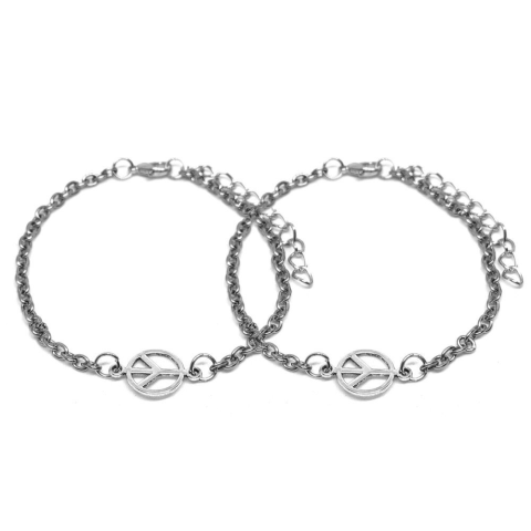 1 kép Békejel charmos rozsdamentes acél páros karkötő, ezüst színű