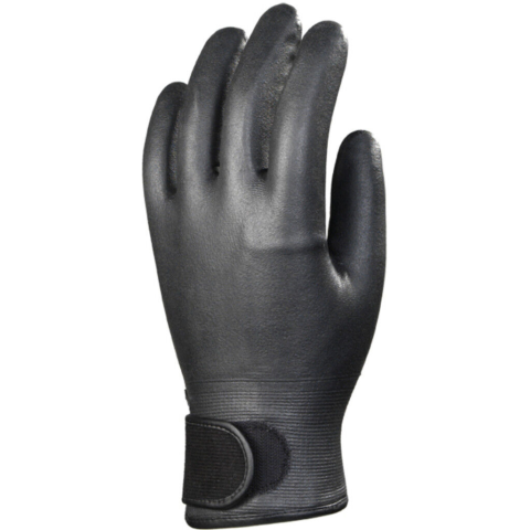 BÉLELT FEKETE NITRIL VÉDŐKESZTYŰ,TÉPŐZÁRAS CSUKLÓVAL_8 Fekete, varrás nélküli poliamiddal erősített 15-ös kötésű kesztyű teljesen mártva fekete puha nitrillel. Fekete polár béléssel Tépőzáras mandzsetta