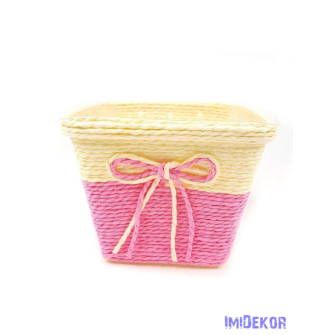 1 kép Bélelt köteles kocka kaspó 13cm - Rózsaszín
