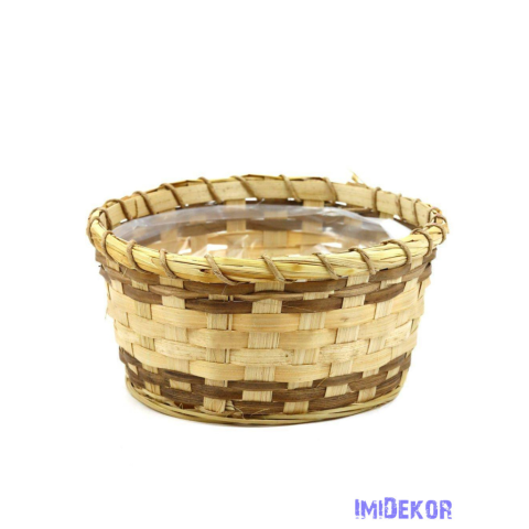 Bélelt peremes bambusz kosár 22cm - Natúr dekorációs kellék 1 kép