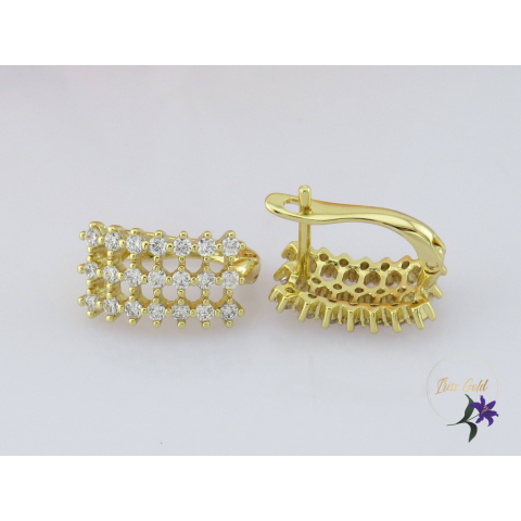 Antiallergén bőrbarát divatos három soros köves fülbevaló Szin: 14K Méret: 15x10 mm Zár: franciakapocs