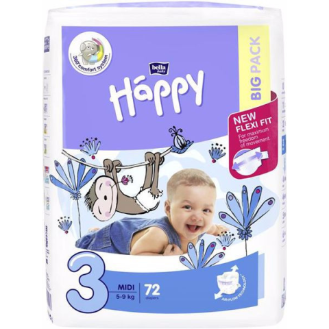 4 db/karton A Bella Baby Happy Midi pelenka (5 – 9 kg) az elasztikus derékrésznek, a rugalmas tépőzárral történő rögzítésnek és a redőzött, szivárgás elleni védőgátaknak köszönhetően megbízható védelmet nyújt a kicsiknek.
