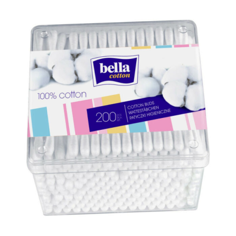 Bella Fültisztító Cotton Műanyag dobozos (200 db/cs) Kiszerelés: 48 csomag/karton. Bella Happy fültisztító műanyag dobozos kiszerelésben. 200 db.