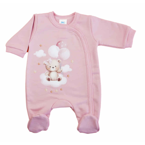1 kép Belül bolyhos elöl patentos hosszú ujjú baba rugdalózó macis mintával