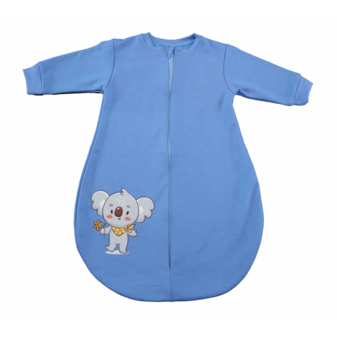 Belül bolyhos hosszú ujjú hálózsák Koalás mintával 2,5 TOG Koalás mintával nyomott, elöl cipzáras, belöl bolyhos anyagból készült hosszú ujjú hálózsák, így könnyen kibontható és a hálózsák levétele nélkül is átöltö