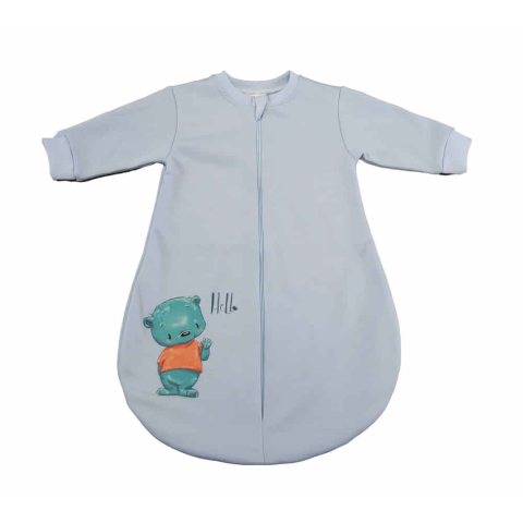Belül bolyhos hosszú ujjú hálózsák Macis mintával 2,5 TOG Macis mintával nyomott, elöl cipzáras, belöl bolyhos anyagból készült hosszú ujjú hálózsák, így könnyen kibontható és a hálózsák levétele nélkül is átöltöztetheted a babád. A zsák alja olyan széle