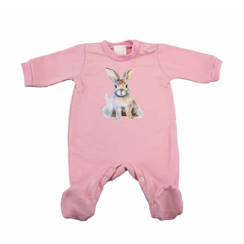 Belül bolyhos hosszú ujjú kislány rugdalózó Nyuszi mintával Kényelmes és nagyon cuki ez a hosszú ujjú baba rugdalózó elején aranyos Nyuszi mintával. Belül bolyhos bababarát anyagból készült, kényelmes viseletet biztosítva egész