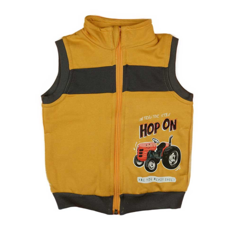 Belül bolyhos kisfiú mellény traktor mintával babapulóver, mellény 1 kép