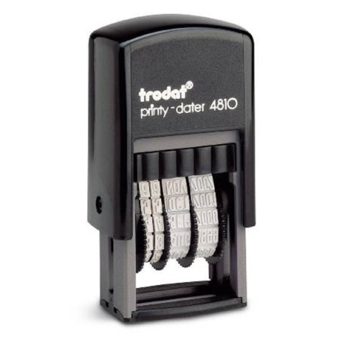 Bélyegző dátum TRODAT 4810 ISO számmal megjelenített fekete ház fekete párna Műanyagházas, önfestékező, automata, 3,8mm-es betűméretű, mini dátumélyegző.