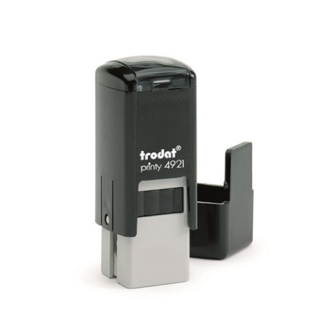 Bélyegzőház Trodat 4921 fekete, fekete párnával Megnevezés: Trodat 4921 bélyegző Bélyegzőházszín: fekete Lenyomatszín: fekete lenyomatméret: 12 × 12 mm javasolt sorok száma: 3 cserepárna: 6/4921