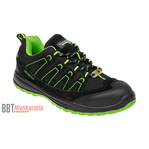 Adamant Alegro S1P ESD fekete/zöld félcipő - Felső anyag: velúr marhabőr + textil - Belső: textil - Belső talp: EVA + textil - Talp: Zephyra PU/PU, antisztatikus, olajálló, csúszásgátló - Acél orr- és talpmerevítő - EN ISO 20345:2011 S