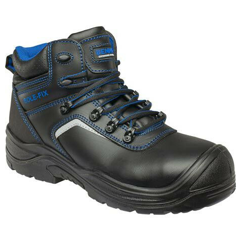 Biztonságos, teljes egészében bőrből készült bokacipő, S3 jelöléssel. Sarokrészen SOLE-FIX rendszerrel a talp jobb fixálásáért. A lábbeli a jobb láthatóságért fényvisszaverő elemekkel is rendelkezik, továbbá kevlár talplemezzel és kompozit orrmerevítővel.