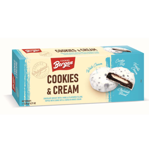 1 kép Bergen Cookies & Cream - Vanília krémmel töltött keksz 128g