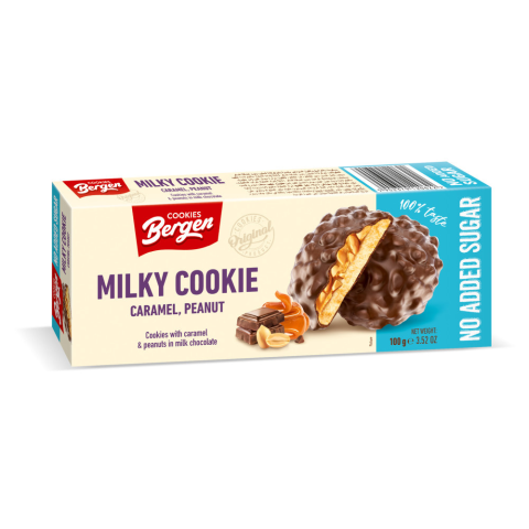 1 kép Bergen milky cookie karamellával tejcsokoládéban hozzáadott cukor nélkül 100 g