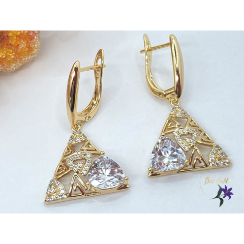Gyönyörű háromszög fülbevaló fehér cirkonkővelSzin:18KMéret:37x20mmZár: francia