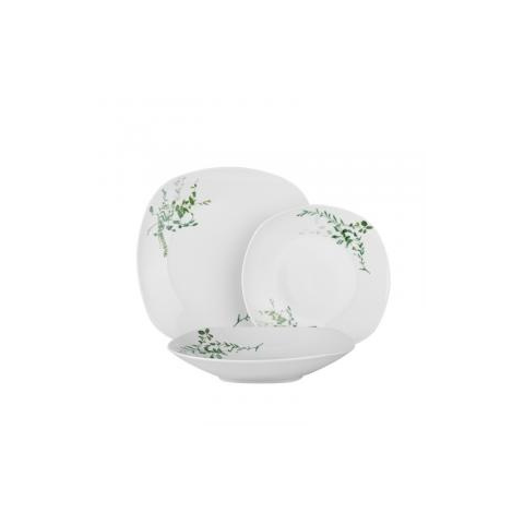 Berlinger Haus Étkészlet 18 részes porcelán levél dekorral BH/10200 - Kiváló minõségû, elegáns kivitelezésû porcelán étkészlet - Színe: fehér / zöld - Anyaga: kerámia (stoneware) - Készlet tartalma: 6 db lapos tányér: 24,7*2,3 cm 6 db salátás tál: 20*2,3 cm 6 db leveses tányér: 21,7*4,2 cm