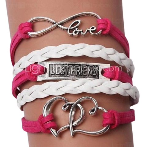 Színes barátság karkötő fehér és rózsaszín színben, "Love" és "Best Friend" medálokkal, tökéletes ajándék barátnőnek