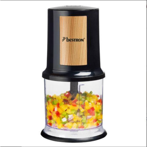 Ételaprító - 500ml - 2 vágókés - 400W - Fekete/fa
