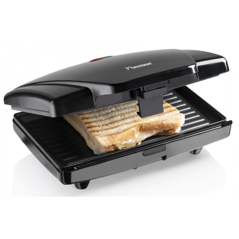 - 2 DB szendvics elkészítésére alkalmas- Automata hőmérséklet szabályozás- Sütőlapok mérete: 21,6x 12 cm- Tapadásmentes sütőfelület- Grillezéshez is kiváló- Könnyen tisztítható- Nagy, hőálló fogantyúk- Csúszásmentes lábak-