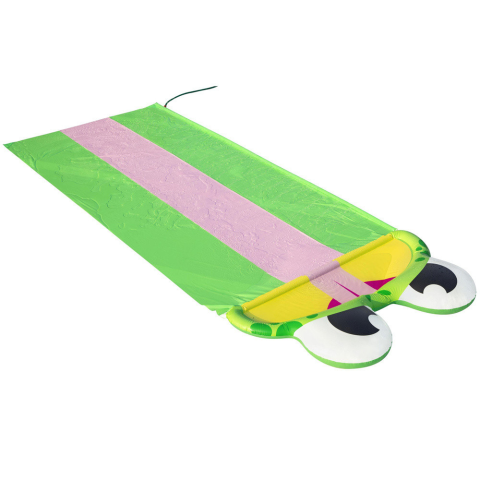 Információk Bestway triple water slide H2O GO! FROG is a cheerful idea for play from Bestway for all children who like to actively spend time outdoors. The slide has a wide triple track, 488 cm long, ideal for organizing races, with an image of a joyfu