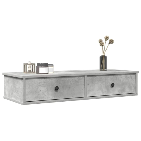 1 kép Betonszürke szerelt fa falipolc fiókokkal 100 x 37,5 x 19 cm