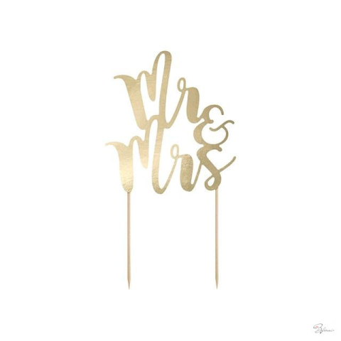 Tortafedő Mr&Mrs, arany tükörpapírból, magassága kb. 25,5 cm.