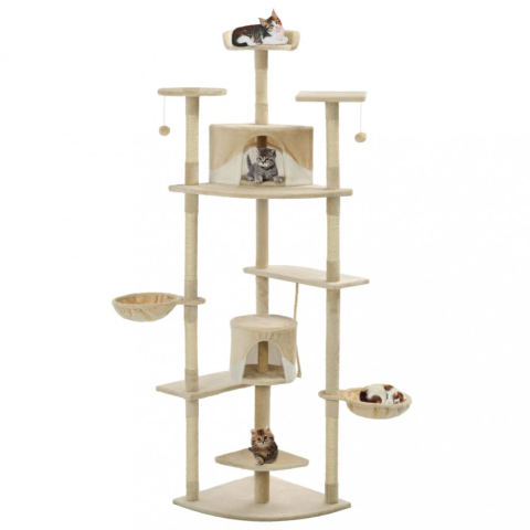 1 kép Bézs/fehér macskabútor szizál kaparófákkal 203 cm
